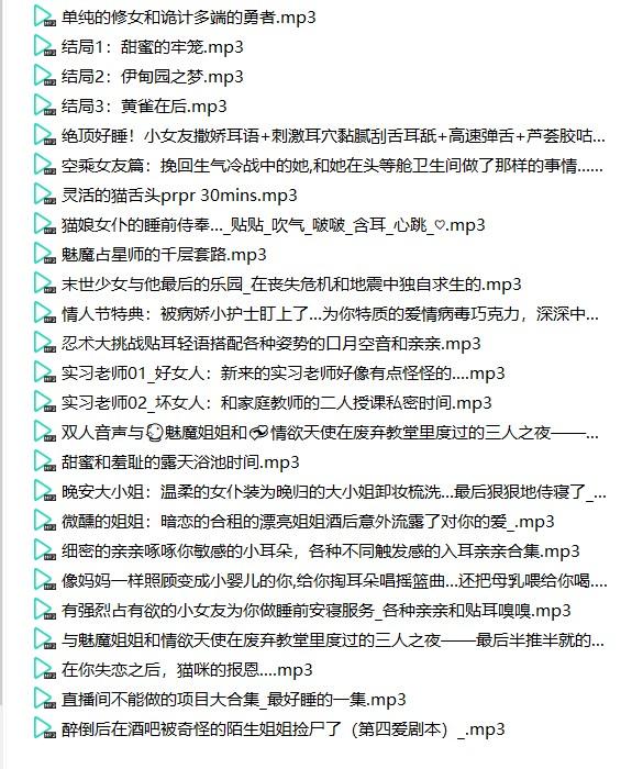 B站织月黛黛付费音声合集 ASMR合集 ASMR音频 在线播放 2小时前 前往下载 66站长 取消关注 关注 私信 B站织月黛黛付费音声35部合集 文件数量:35部 文件大小:1.41G 文件格式:MP3音频,本资源采用分卷压缩,下载所有分卷001、002后解压 下载权限 ¥ 免费下载 评论并刷新后下载 登录后下载 {{attr.name}}: 您当前的等级为 登录后免费下载登录 小黑屋反思中,不准下载! 评论后刷新页面下载评论 支付¥以后下载 请先登录 支付积分以后下载立即支付 支付以后下载立即支付 您当前的用户组不允许下载升级会员 您有每天免费下载所有资源次的特权,今日剩余次 已取得下载权限 织月黛黛